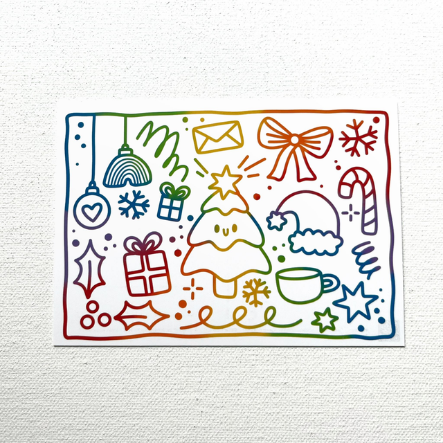 Das Postkartenmotiv zeigt verschiedene illustrierte Weihnachtsmotive wie ein Tannenbaum, eine Weihnachtsmütze, Zuckerstangen und co. mit einem Regenbogen-Farbverlauf, auf der Rückseite befinden sich ebenfalls vereinzelt weihnachtliche Motive. Vorder- und Rückseite wurden digital von Hand gezeichnet und anschließend professionell auf 330g Postkartenkarton gedruckt. Mit Liebe zum Detail gestaltet, ist jede Karte ein kleines Kunstwerk, perfekt geeignet, um den liebsten ein paar Grüße zu senden, Freude zu Weihnachten zu verschenken oder als dekoratives Element in deinem Zuhause. Perfekt für alle, die Weihnachten queerer und inklusiver machen wollen und nach alternativen Weihnachtskarten suchen.