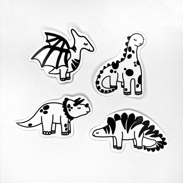 Dieses Stickerset besteht aus 4 handgemachten Dinosaurierstickern. Alle Stickermotive sind von Hand gezeichnete digitale Illustrationen die ich drucke, laminiere und von Hand ausschneide. Dadurch können leichte Randabweichungen auftreten, was jeden Aufkleber zu einem Unikat macht. Ideal als Geschenk für Dino Liebende, um Laptops, Notizbücher, oder sonstige Gegenstände individuell zu gestalten!
